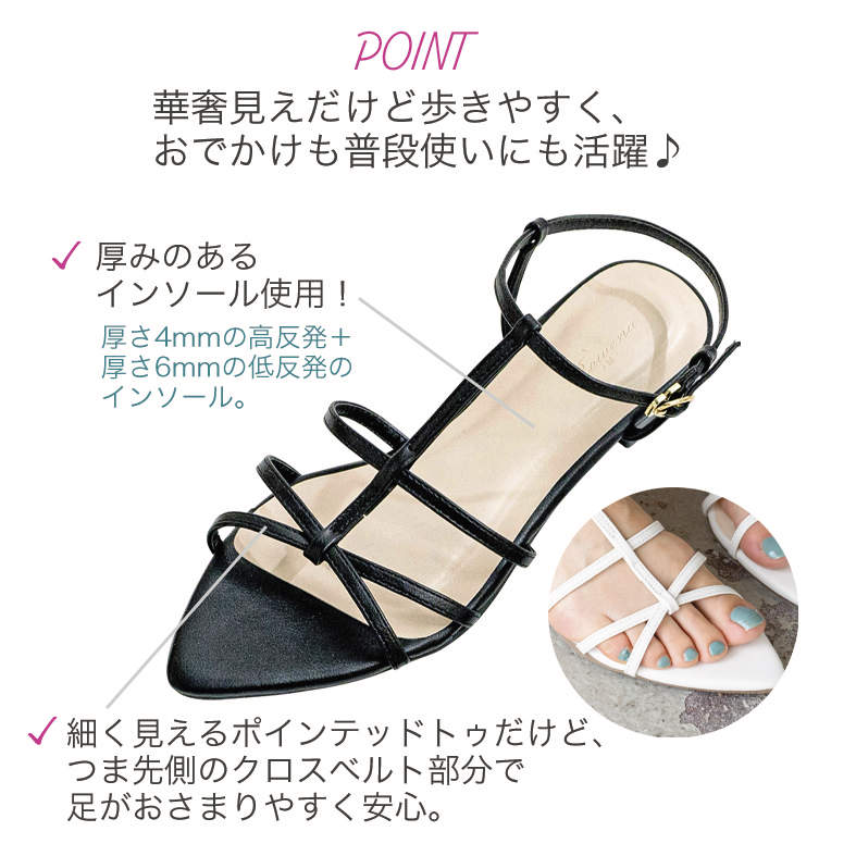 華奢なストラップで素足を綺麗見せ