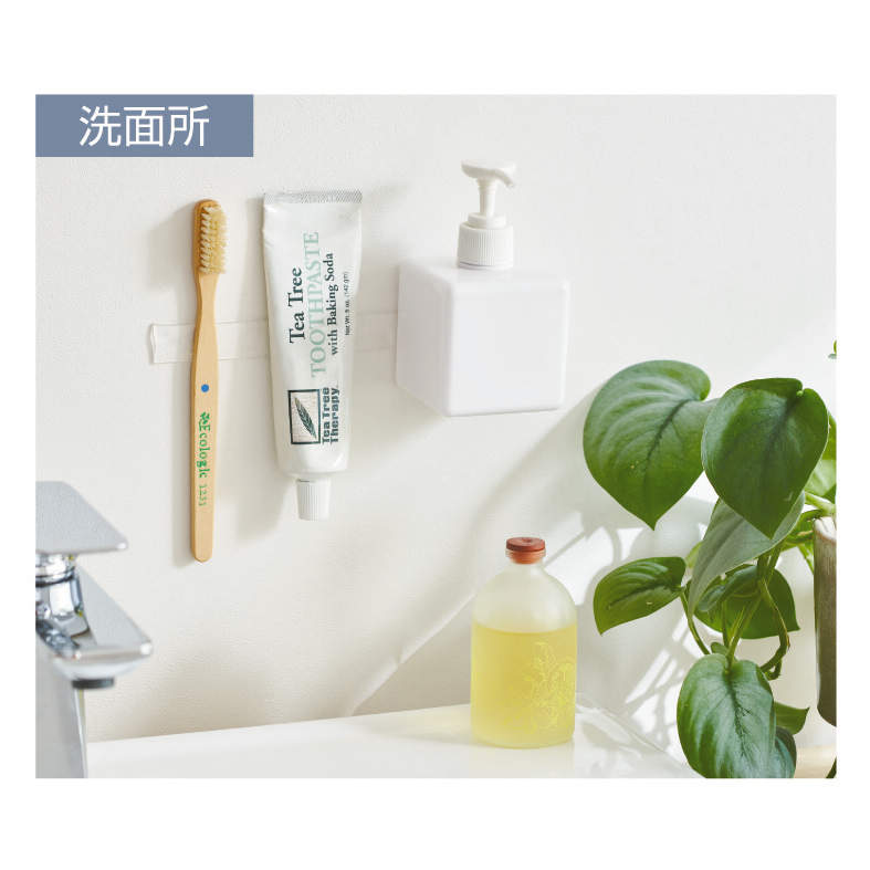 跡が残りにくく綺麗に剥がせる強力テープ。貼り付けてスッキリ「浮かせる収納」に大活躍!