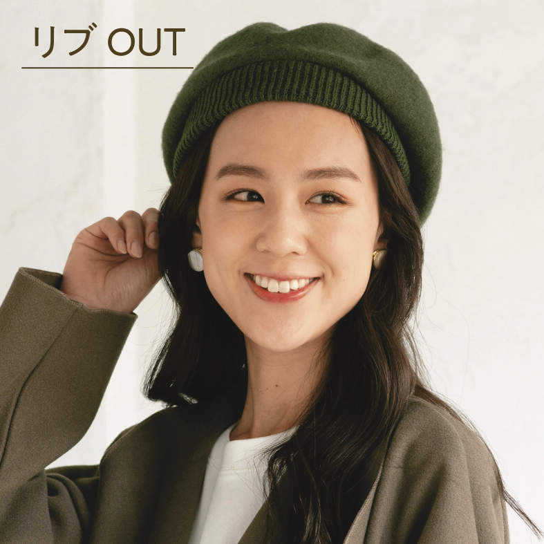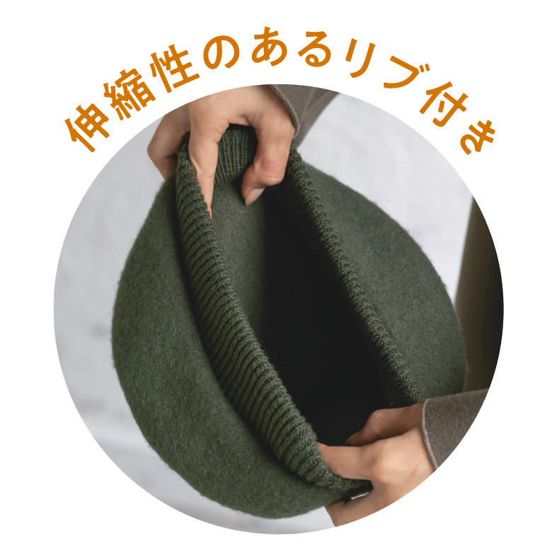伸縮性のあるリブ付でゆったり被れるベレー帽